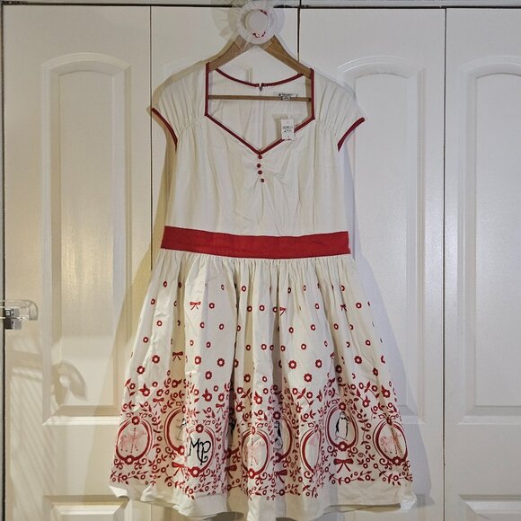 disney dress shop, mary poppins dress, disneybounding, disney parks fashion, dapper day dress, vintage disney style, 1X plus size disney, nwt disney dress, mary poppins costume, red white dress, collector disney clothing, retro disney dress, pinup style disney.