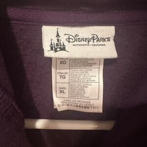 This Disney jacket combines a vibrant purple and red color scheme with sparkling embellishments for a touch of magic. The zip-up design offers a casual yet stylish look, perfect for any occasion. The front features a unique pattern that adds a playful flair to this standout piece.