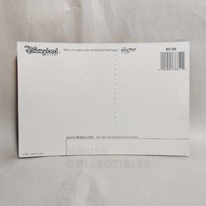 The back of the postcard has the Disneyland Resort logo and a quote from Mickey Mouse that reads " Here's to many years of mischief and magic".
