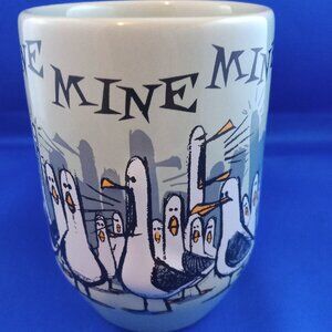 This adorable mug is mint green with graphics of the Seagulls from Finding Nemo yelling ''mine mine mine...''