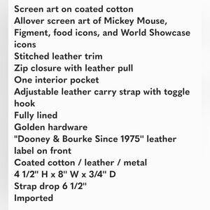 Up for sale is this Dooney & Bourke wristlet made for Disney Parks to celebrate their Food & Wine Festival. Features Mickey Mouse and Minnie Mouse!