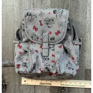 Disney Parks Gray Minnie Mouse Backpack Purse Bg Red Bows