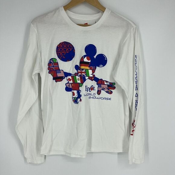 Disney Parks Hanes T Shirt Size Medium Womens White Epcot World Showcase Soccer