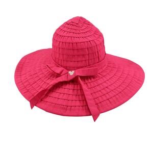 Disney Parks Hat Womens Size Adult Pink Wide Brim Foldable Logo Ribbon Bow