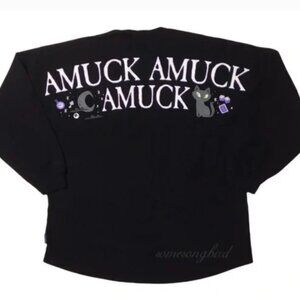 Disney's Hocus Pocus "Amuck Amuck Amuck" Spirit Jersey is a long-sleeve shirt inspired by the 1993 film, often released as part of Halloween collections at Disney Parks. The phrase "amuck, amuck, amuck" is famously repeated by Sarah Sanderson in the film.