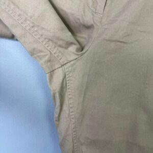 Disney Parks Khaki Tan Capri Pants Blue Embroidered Mickey Mouse Women's Size 12. 100% cotton khaki tan capri pants with pockets and a blue embroidered Mickey Mouse under the left front pocket.