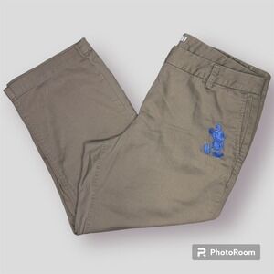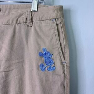 Disney Parks Khaki Tan Capri Pants Blue Embroidered Mickey Mouse Women's Size 12