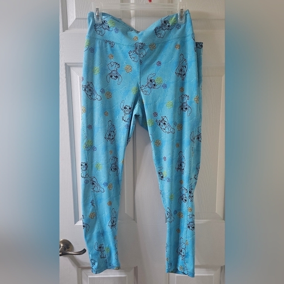 Disney Parks 1X Lilo and Stitch. Pre-loved in excellent condition leggings. Fun Disney leggings featuring Stitch. Bright blue with colorful floral accents. Perfect for casual wear.