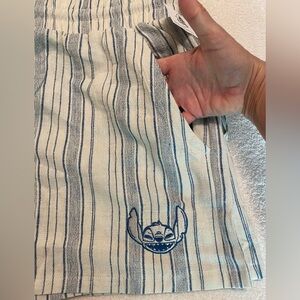 NWT. Blue and cream stripes shorts with pockets. Features a Stitch Patch on bottom left. Super soft and comfy material 70% Viscose 30% Linen. 3” inseam.