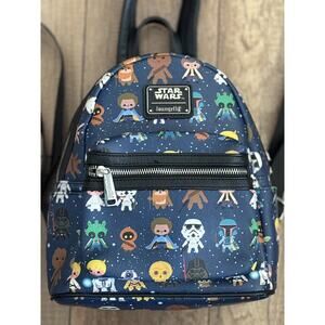 Disney Parks Loungefly Star Wars Chibi Character Print Mini Backpack Purse EUC