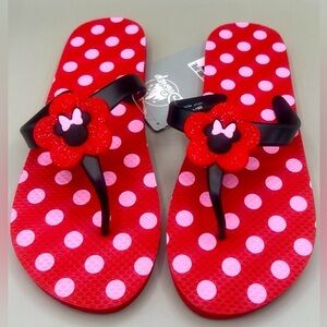 Disney Parks MINNIE MOUSE Flip Flops in Polkadots Women’s Adult Size 5-6 NWT