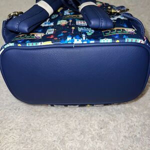 This adorable Loungefly mini backpack is perfect for any Disney fan. The backpack features the Dapper Dans, a popular Disney attraction, as well as Main Street USA. The multicolor design is eye-catching and fun, and the backpack is brand new. It's the perfect accessory for a day at the Disney parks or just for everyday use. The backpack is small and compact, making it easy to carry around but still big enough to hold all your essentials. Whether you're a collector or just looking for a new bag, this Disney Parks Loungefly mini backpack is sure to impress.