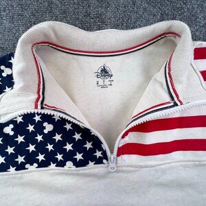 Disney Parks Medium Red White Blue USA 1/4 Zip Mickey Stars Walt Disney World M
