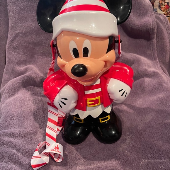 Disney Parks Mickey Mouse Christmas Popcorn Bucket Santa Elf Stripe Suit, #7983