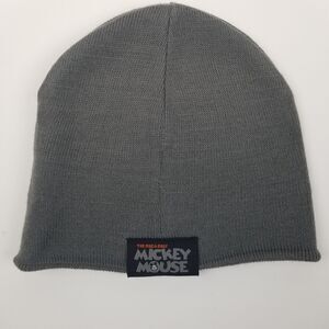 Disney Parks Mickey Mouse Cross Stitch Pattern Youth Beanie Hat Gray One Size