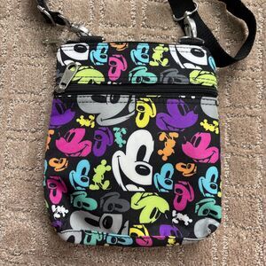 Disney Parks Mickey Mouse Crossbody Bag Purse Black Colorful Pockets Card Holder