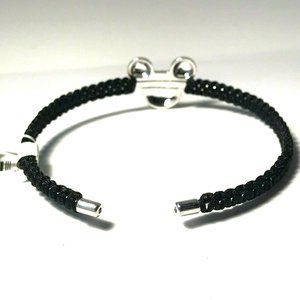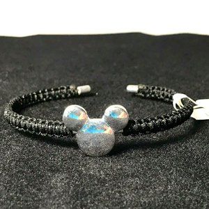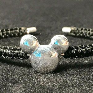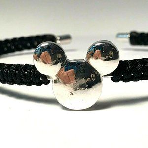 Disney Parks Mickey Mouse Icon Bracelet Rope Cuff Bangle Silver Black Disneyana