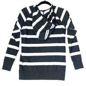 Disney Parks lightweight knit t-shirt type material hoodie Dark Charcoal Gray and White Stripe