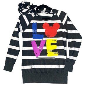 Disney Parks Mickey Mouse LOVE Lightweight Stripped Long Sleeve Hoodie Size XS