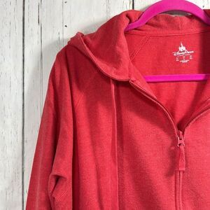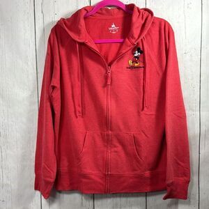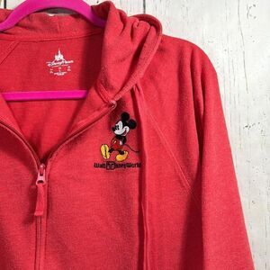 Disney Parks Mickey Mouse Red Zip Up Hoodie Sweatshirt L Embroidered Logo Classic Cozy Retro Disneycore