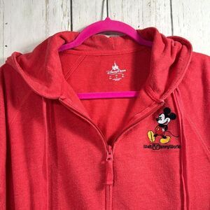 Disney Parks Mickey Mouse Red Zip Up Hoodie Sweatshirt Embroidered Logo Retro