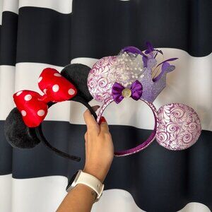 Disney Parks Minnie Ear Hat Crown & Feathers Jubilee Purple Headband + a Bonus pain of Minnie Ears
