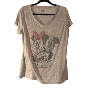 Disney Parks Minnie & Mickey Mouse Sparkly T-shirt XL Heathered Gray Linen Blend
