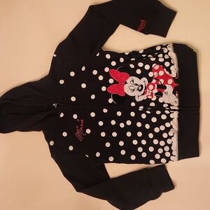 Disney Parks Minnie Mouse Black zip up Hoodie Sweatshirt Medium. Good pre-owned condition. Smoke free home. Please see pictures for measurements.