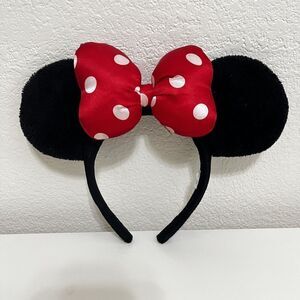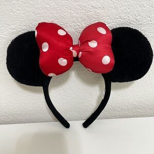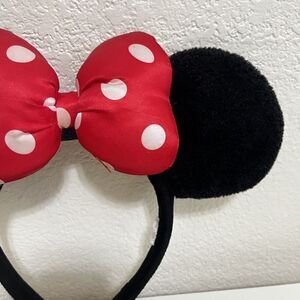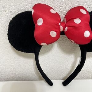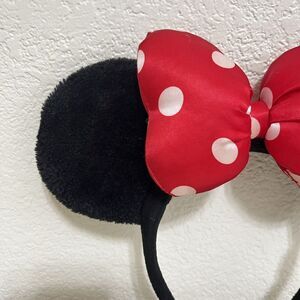 Disney Parks Minnie Mouse Black Plush Ears Red Satin Polka Dot Bow Headband. Were worn while we were in the park and the tag has been cut. There is some yellowing to the white polka dots/there are slightly stained in places - please see the pictures. Still so cute and have a ton of life left.
