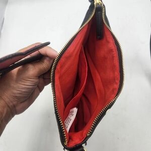 Disney Parks Minnie Mouse Black And White Polka Dot / Stripes With Red Bow Crossbody Bag