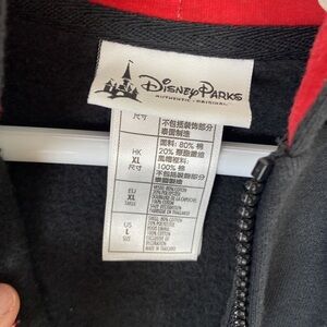 This Disney Parks zip-up hoodie features adorable Minnie Mouse ears and a playful polka dot design, perfect for fans of casual and kidcore style. With its vibrant black, red, and white color scheme, this hoodie brings a touch of Disney magic to everyday outfits. Ideal for theme park visits or lounging, it offers both comfort and charm. Made from quality materials, it’s designed to last.