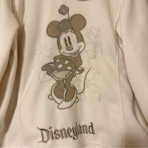 Disney Parks Disneyland Minnie Mouse Embroidered Fleece Zip Up Hooded Jacket Cream