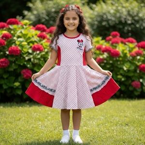 Disney Parks Minnie Mouse Girls Large Red Polka Dot Ruffle A-Line Twirl Dress