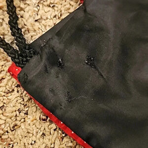 Disney Parks Minnie Mouse Ruffles Drawstring BackPack. Does have a couple snag spots on the back but does not effect the bag.