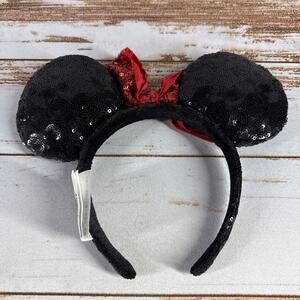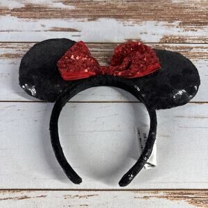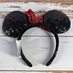 Disney Parks Minnie Mouse Sequin Ears Headband – Black/Red Bow, Authentic