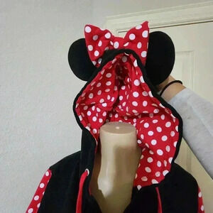 Disney Parks Minnie Mouse Zip-Up Hoodie w/Ears and Bow Polka Dots Size M