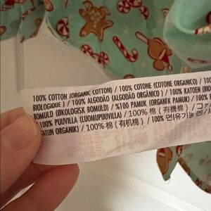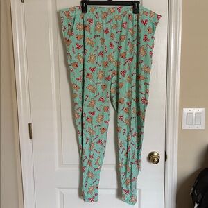 Cozy mint pajamas with playful gingerbread print. Perfect for festive nights.