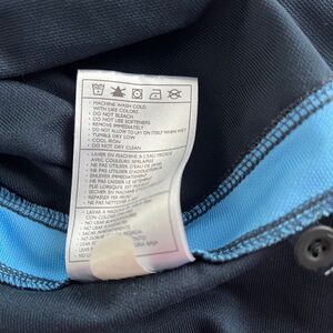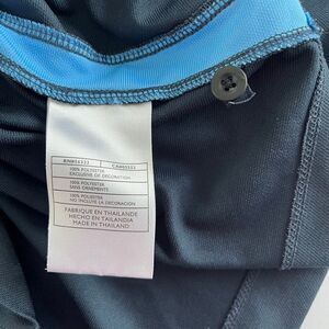 and well as Sky Blue Nike Swoosh logo embroidered at back yolk of shirt