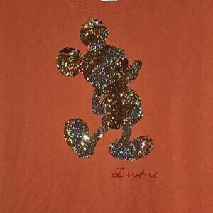 Disney Parks Orange Disneyland Sequined Mickey Mouse Oversized Crew Sweatshirt M