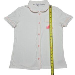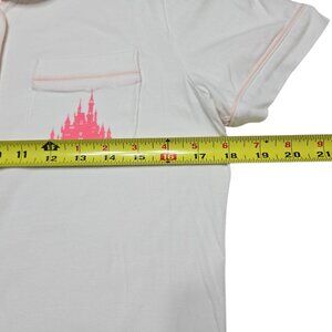 Disney Parks Pajama Top Womens Small White Pink Castle Stretch Sleepwear Shirt