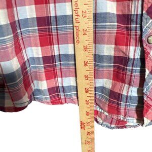Disney Parks Plaid Pearl Snap Button Down Mickey Mouse Shirt Men's Size XL Red