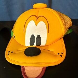 Disney Parks Pluto Plush Face Trucker Hat Cap Snapback Adult Ears Nose Mesh