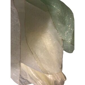 Authentic from Disney Parks Bibbidi Bobbidi Boo Disney Princess Tiana castle costume ballgown dress. Heavy, well made gown. This enchanting Princess & the Frog gown features a sequined bodice with elegant gold trim and a ruffled neckline, complemented by a layered petal-style skirt adorned with shimmering glitter. A delicate fabric flower with a faux gemstone center accents the waist, while the stretchy back panel ensures a comfortable fit for dress-up play or special occasions. Perfect for fans of the hardworking and determined Princess Tiana, this dress brings a touch of Bayou charm to any wardrobe.