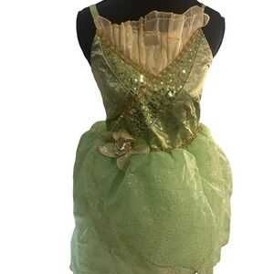 Disney Parks Princess Tiana Costume Dress Green Gold ballgown Size 13