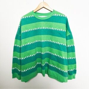 Disney Parks Pullover Sweatshirt Mickey and Friends Green Stripe Spellout 2X