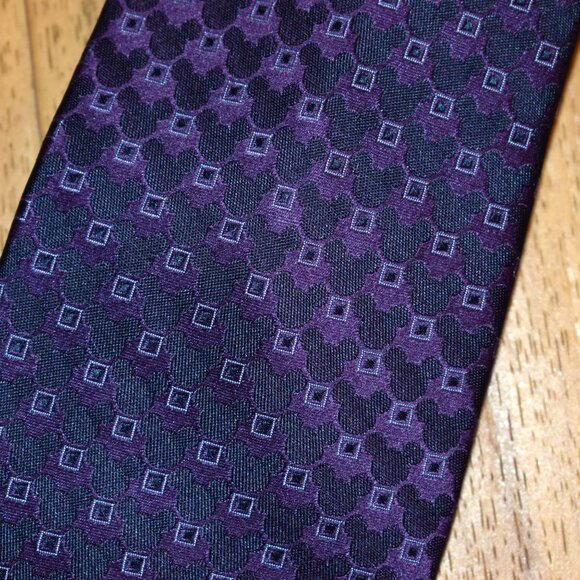 Disney Parks 100% silk tie. Purple with a subtle Mickey Mouse pattern throughout. Measurements: front width 3.5" (widest part); back width 1.25" (narrowest part). Length: 61.5" In excellent condition with no visible flaws. Comes from a smoke free home.