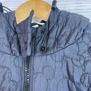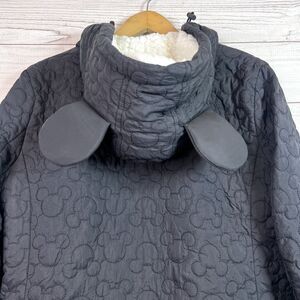In great condition. Disney Parks Black Quilted Jacket Embroidered Mickey Mouse Icon Head Hood Ears On Hood Full Zip Sherpa Lining Pockets Mickey Head Zipper Pull. Refer to pictures for measurements. From smoke-free/pet-free home.