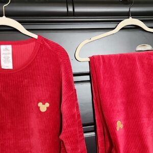 NWOT, red cordoroy lounge set with gold Disney logo. Comfortable and ideal for everyday wear. Top is 1X, bottom is XL.