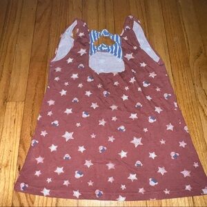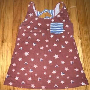 Patriotic style! Pocket in the front and two bows in the back. Loose fit. Preowned and in excellent condition - no rips, tears or staining! Material is a sort of faded or muted red which is how it was purchased. From a smoke free home.