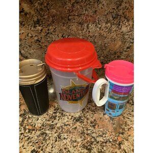 Disney Parks Resort Souvenir Plastic Travel Cups with Lids & Handles Lot of 3